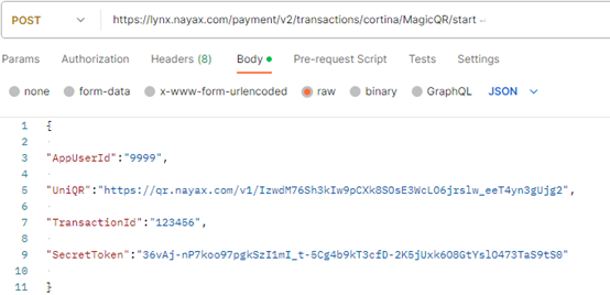 https://MagicQR.com/IzwdM76Sh3kIw9pCXk8SOsE3WcLO6jrslw_eeT4yn3gUjg2This would mean that once a consumer has scanned this URL and MagicQR is ready to direct them for payment, they would need to take the hash at the end of the URL and revert it to the UniQRCode provided by Nayax, and then have “Start” include the URL in the “UniQR” field: