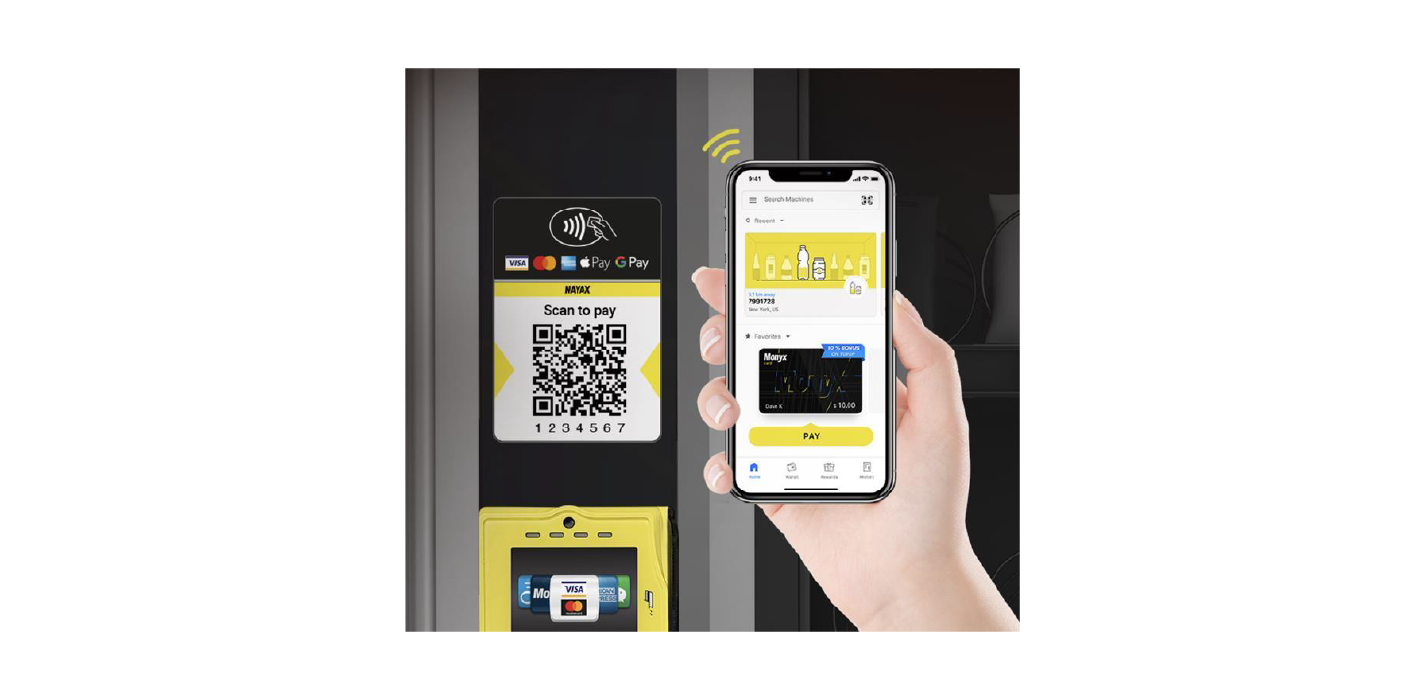 Before selecting a product, the user scans the QR code displayed on the machine, as in the image below.