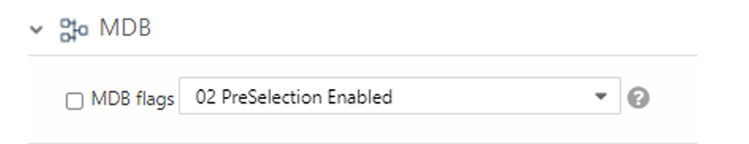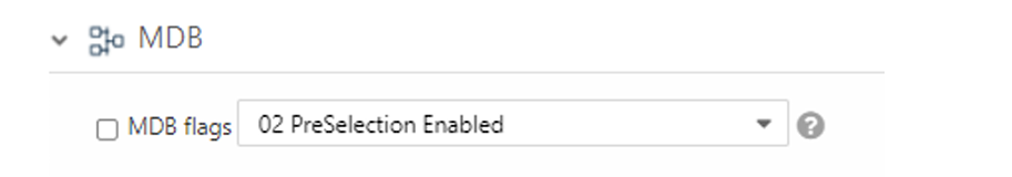 Select MDB Flags and set PreSelection Enabled to Yes.