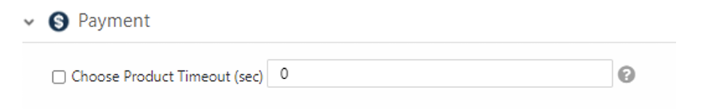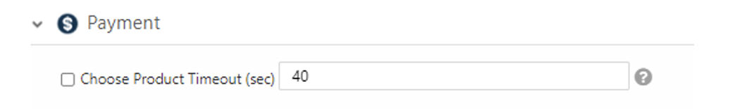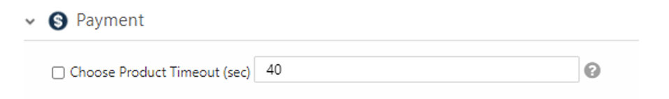- The Choose Product Timeout option is the timeframe that the consumer is required to choose a product. When the transaction flow starts with card authorization, the Choose Product Timeout option must be defined with a value greater than zero.