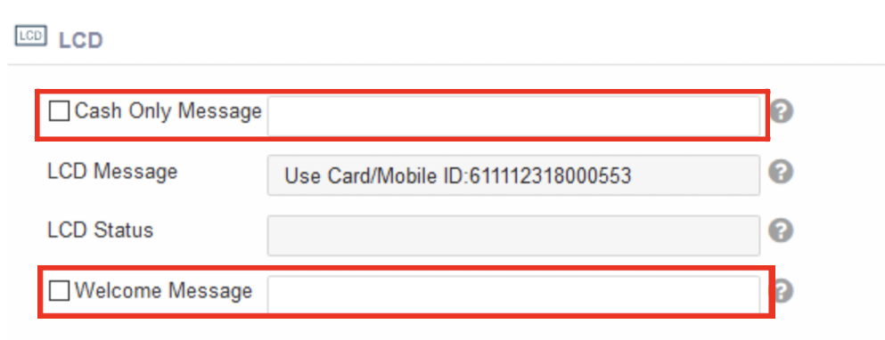 @@to the device in the Welcome message attribute using the LCD section on the Machine page. - To customize the Welcome message, click on the LCD section and enter an appropriate message (for example, “Swipe card” to start the transaction).