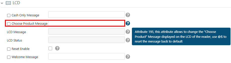 - Or the product selection message: