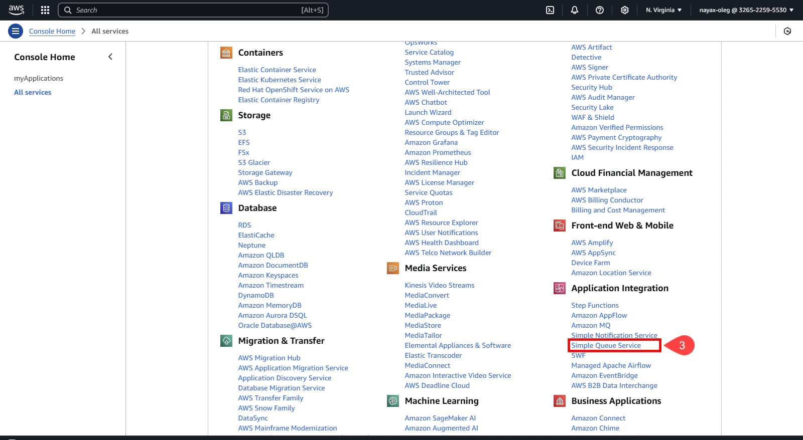 Search the Application Integration category and select Simple Queue Services (SQS).
