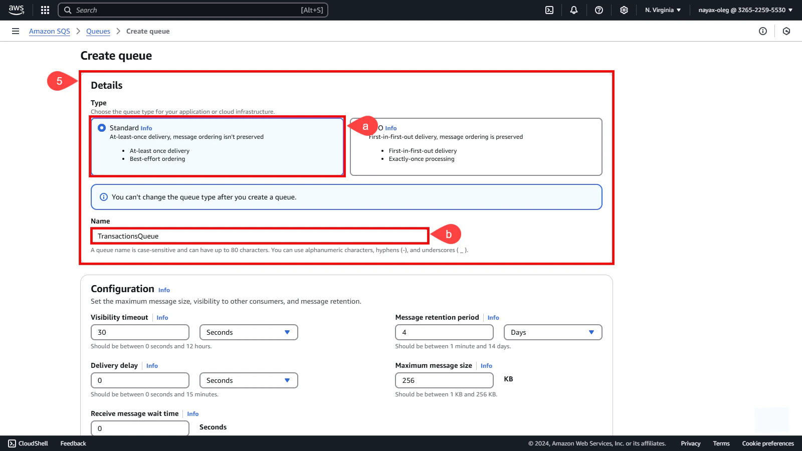 a. Select Standard as the queue type.