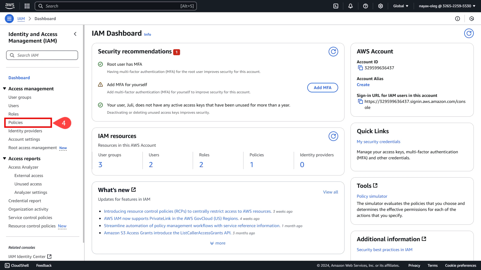 Click Policies on the left side menu.