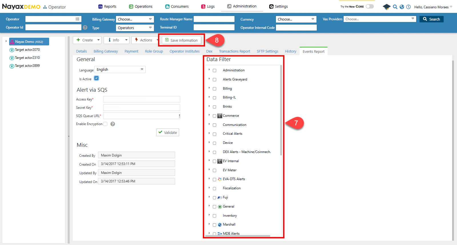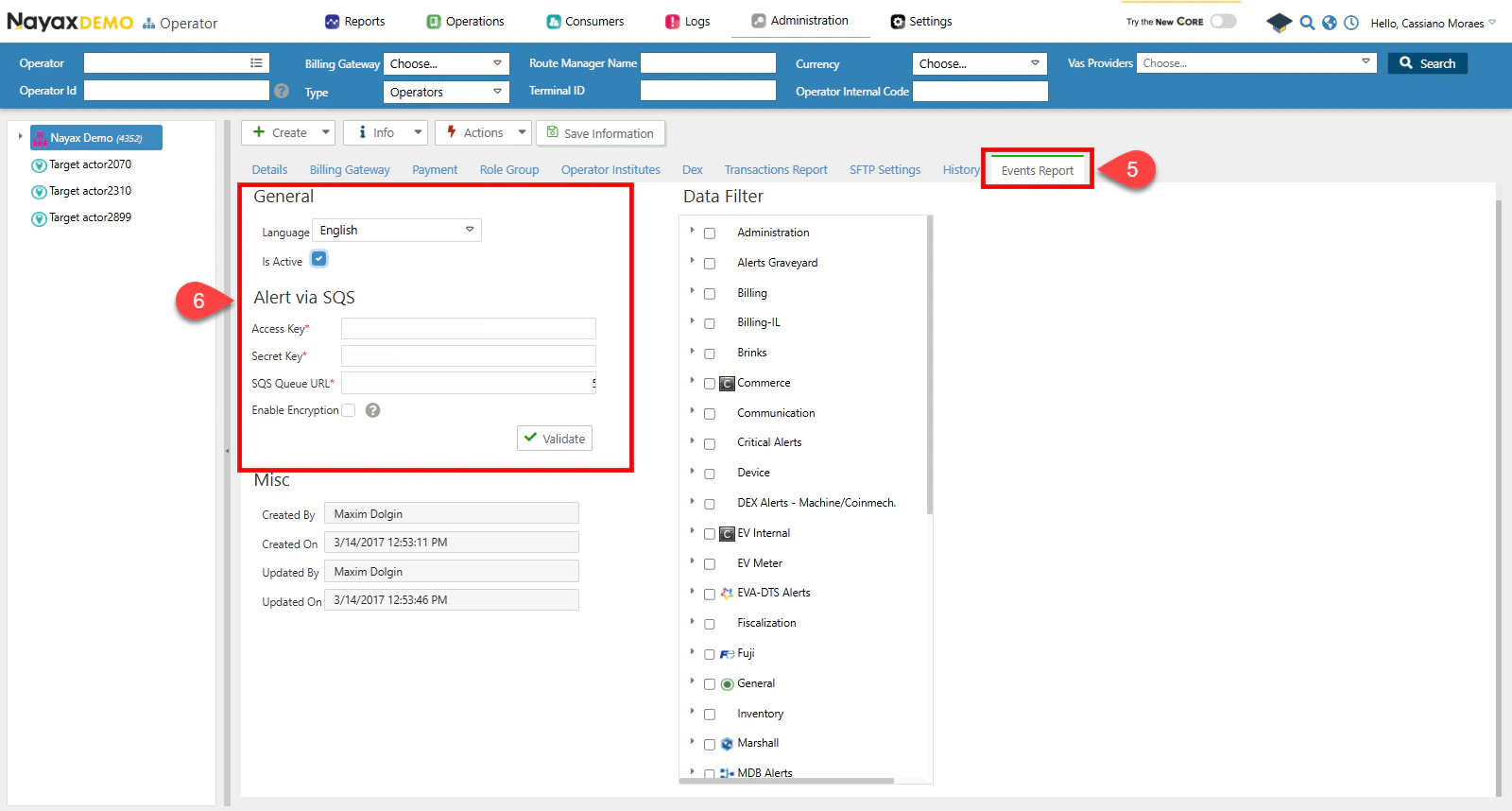 Follow these steps to configure Events and Alerts Delivery in Nayax Core:-