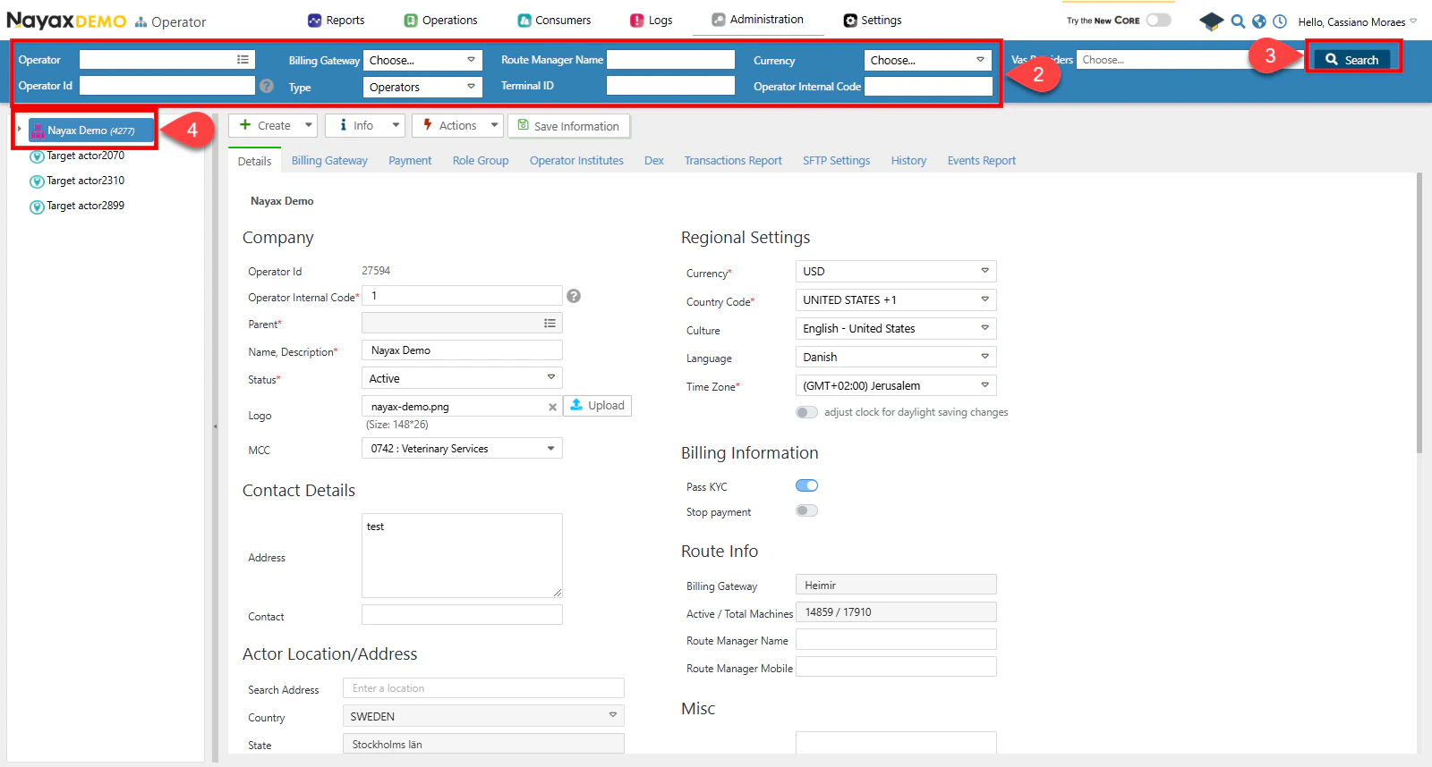 Select the operator to display all tabs and details.