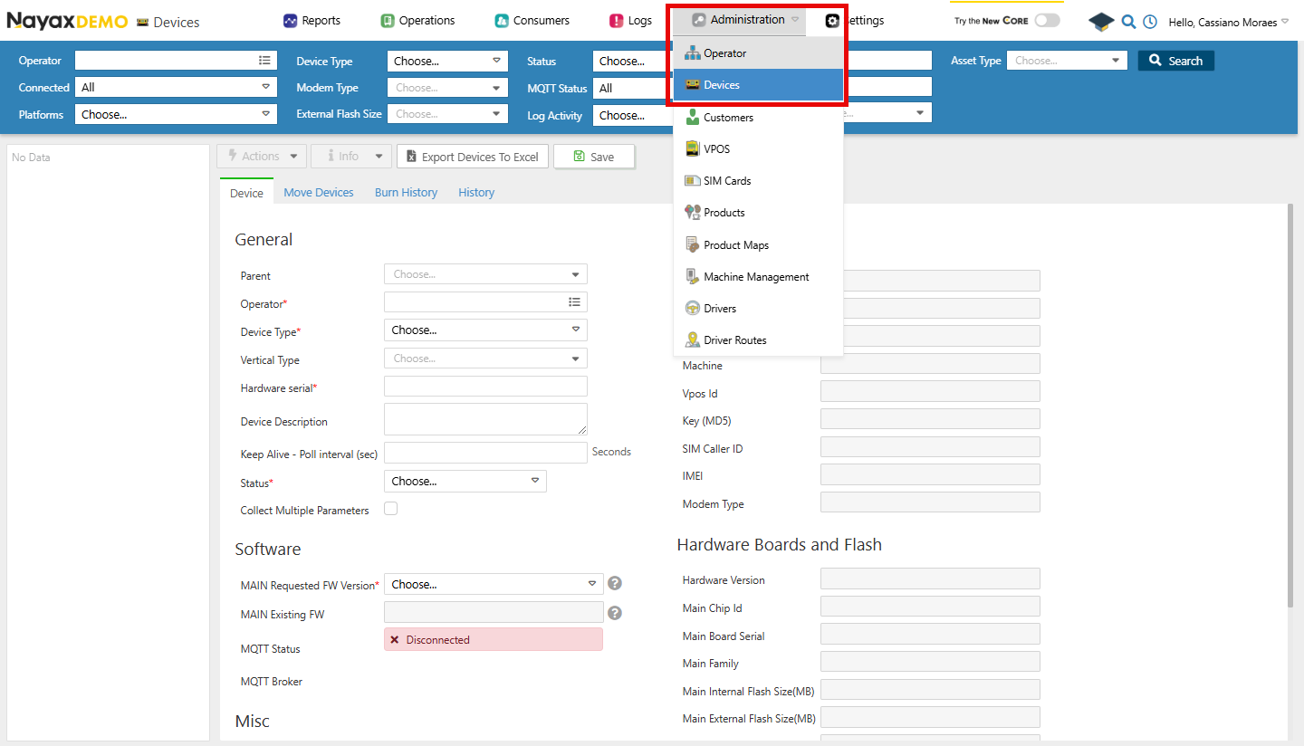 - In your Dashboard, go to Administration > Devices.