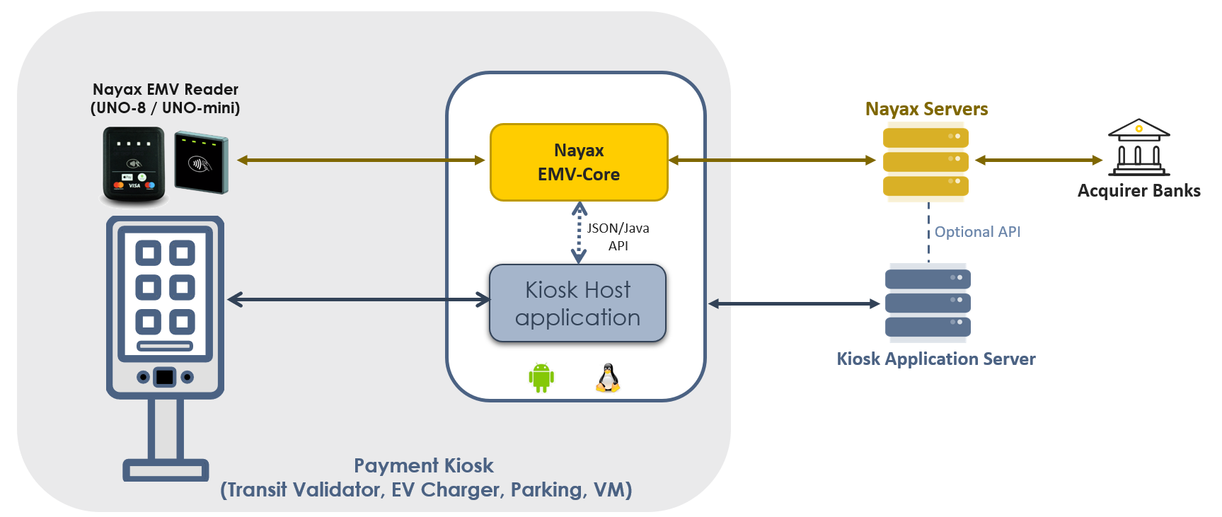 - Nayax EMV Core SDK with sample code for Android and Linux.